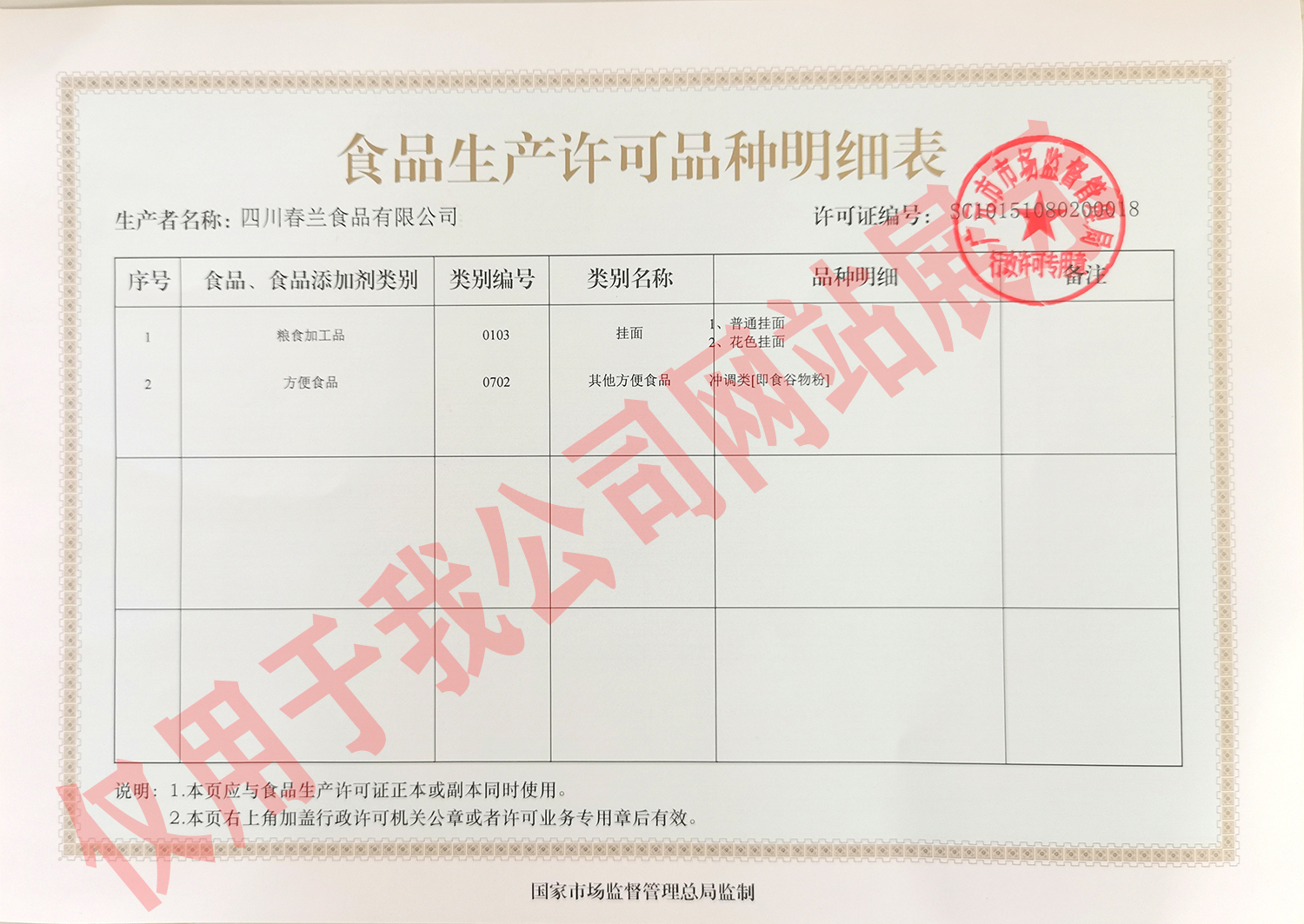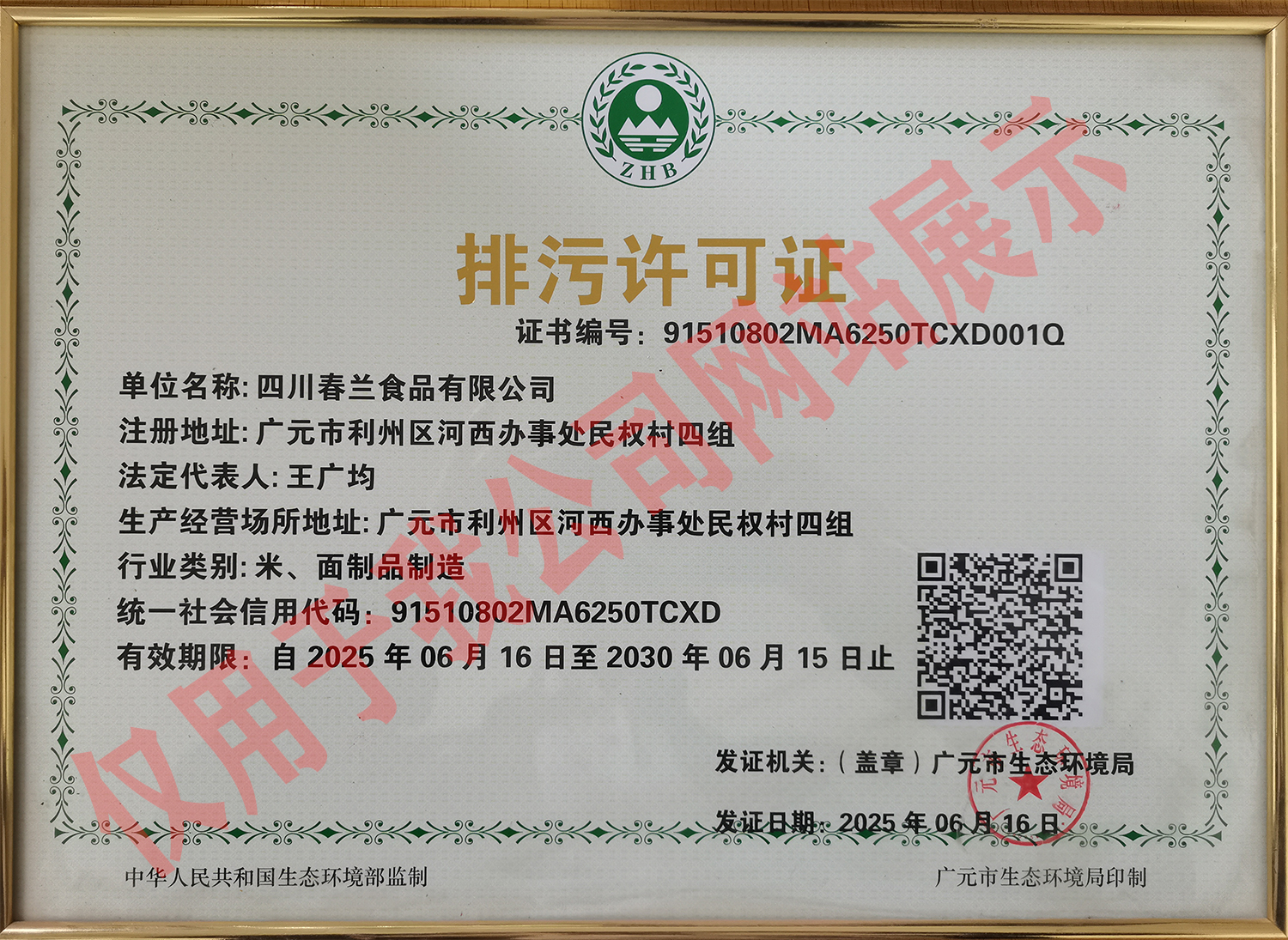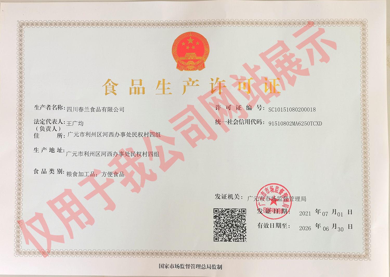 四川春兰食品有限公司 地址:广元市利州区河西办事处民权村四组